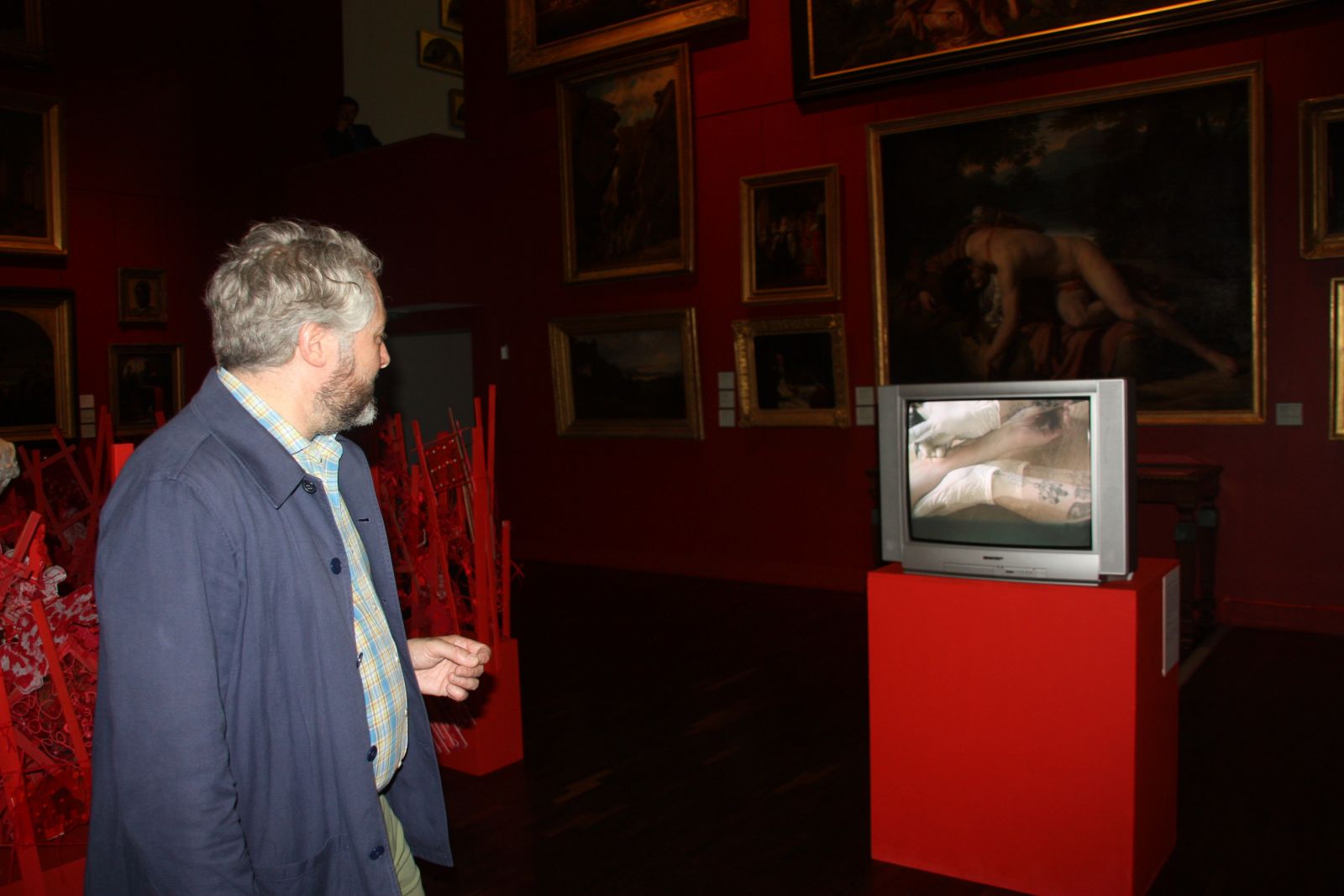 François Michaud, et les œuvres contemporaines de “Cinéma permanent” au musée d’Orléans.