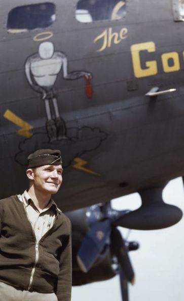 Robert Capa — Le capitaine Jay F. Shelley devant « The Goon », un bombardier B-17 de l’armée de l’air américaine, en partance pour un raid au-dessus de l’Italie, Tunisie, 1943 International Center of Photography, New York © Robert Capa/International Center of Photography/Magnum Photos