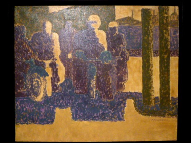 Parce que, si dans ces années soixante dix, Frédéric Brandon n’est pas un peintre militant, il est un artiste provocateur dans sa revendication de peindre ce qu’il voit: il vit et travaille en Normandie alors il peint des vaches, les plages, les ouvriers sortant de l’usine ou les paroissiens de la messe: quelle drôle d’idée dans ces années de contestation !