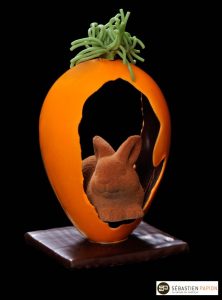 À quoi reconnait-on une bonne Maison ? À la queue sur le trottoir, non ? Et bien depuis quelques années, rue Jeanne d’Arc à Orléans, celle devant la boutique de Sébastien Papion s’allonge, s’allonge… Tout comme son chiffre d’affaires passé de 170 000 € en 2005 à plus de 1 M€ aujourd’hui avec deux boutiques et des concurrents tout autour ! Son secret ? Être unique ! Un point d’honneur que met Sébastien Papion dès lors qu’il reprend La Duchesse Anne, rue Bannier, en 2005, après des années parisiennes chez Maiffret aux Champs Élysées puis au Bonbon Royal dans le 17e. “On s’interdit de faire ce que les autres font” revendique le chocolatier, pithivérien d’origine, 40 ans tout juste. “Toutes nos créations sont uniques car nous créons nos moules nous-mêmes”. Ainsi les stars de Pâques sont d’incroyables animaux d’un réalisme « fondant » : de la chouette au clair de lune au lapin dans sa carotte, en passant par le cochon dans son œuf rose, la poule et son œuf au plat ou encore à la marmotte mais pas celle qui met le chocolat dans le papier d’alu comme dans la pub ! Le tout au détail près !