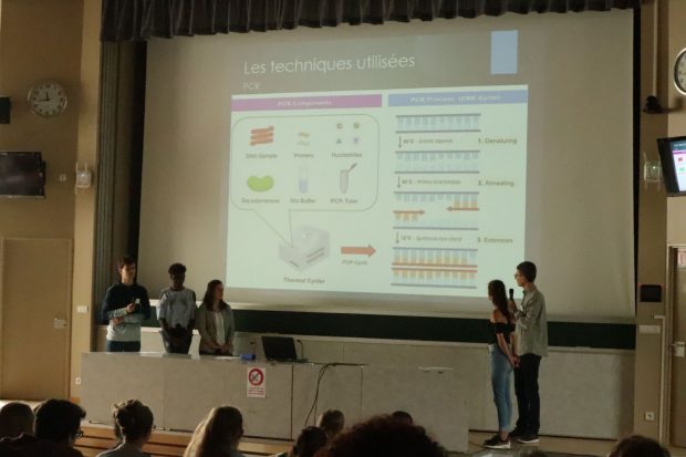 « J’adore la science » insiste Nawfel, élève au lycée Benjamin Franklin. « Ça m’intéressait beaucoup d’être en classe Édifice, même si c’est énormément plus de travail ». Ce dernier et ses comparses ont pendant 10 minutes présenté le projet : « Comportement thermo-optique des milieux hétérogènes : mesure et restitution par différentes techniques d’homogénéisation ». Un sujet, encadré par Alima NZIE, doctorante au laboratoire CEMHTI, sur lequel ce groupe va travailler pendant trois ans. « Ça fait du bien d’être passé. C’est stressant, mais tout le monde est bienveillant, il n’y a pas de moquerie ».