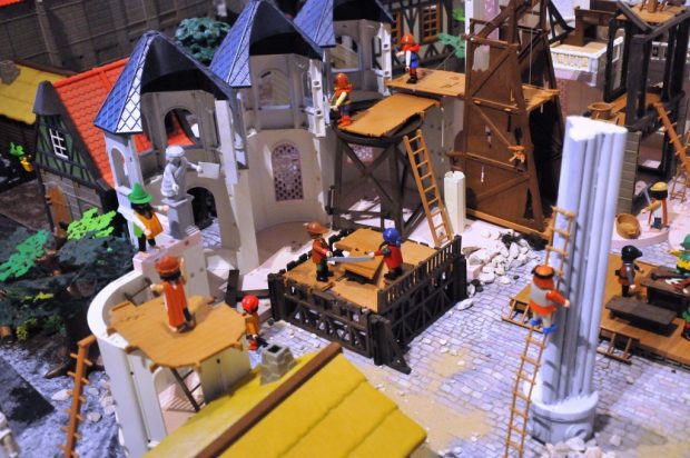 La construction d’une cathédrale ; une cuisine médiévale et le banquer qui l’accompagne ; l’évasion nocturne de Marie de Médicis à Blois ; un atelier de beaux-arts ; une crèche napolitaine ; une station de ski ; le château d’un prince et d’une princesse… Elle en met plein les mirettes, l’exposition d’une partie de la collection de Jean-Philippe Broussin, fan absolu des petits personnages créés en 1974 par l’Allemand Hans Beck. « Nous avons tenu compte des remarques de l’exposition de l’année dernière », explique Aurélie Foucault, chargée de la communication du château royale, « les Playmobil dans leurs scènes historiques ou imaginaires s’étendent dans six salles du rez-de-chaussée, de la salle des états généraux à l’aile Gaston d’Orléans en passant par celle de François Ier, lune scène dans la chapelle (la crèche, Ndlr) et le musée des beaux arts (deux salles) ».