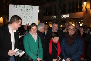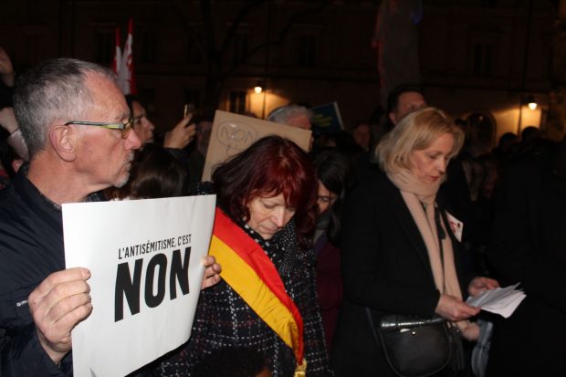En préambule, Baptiste Chapuis (PS) qui était à l’origine du rassemblement a lu la déclaration nationale: “Parce que la paix et la concorde civile sont notre bien commun le plus précieux, parce que nos valeurs communes sont plus fortes que nos divergences, nous en appelons à un sursaut des consciences, et à l’engagement de chacun pour lutter fermement contre toute expression antisémite, contre toutes les formes de haine qui sont la négation même de ce qui fait la France”,.