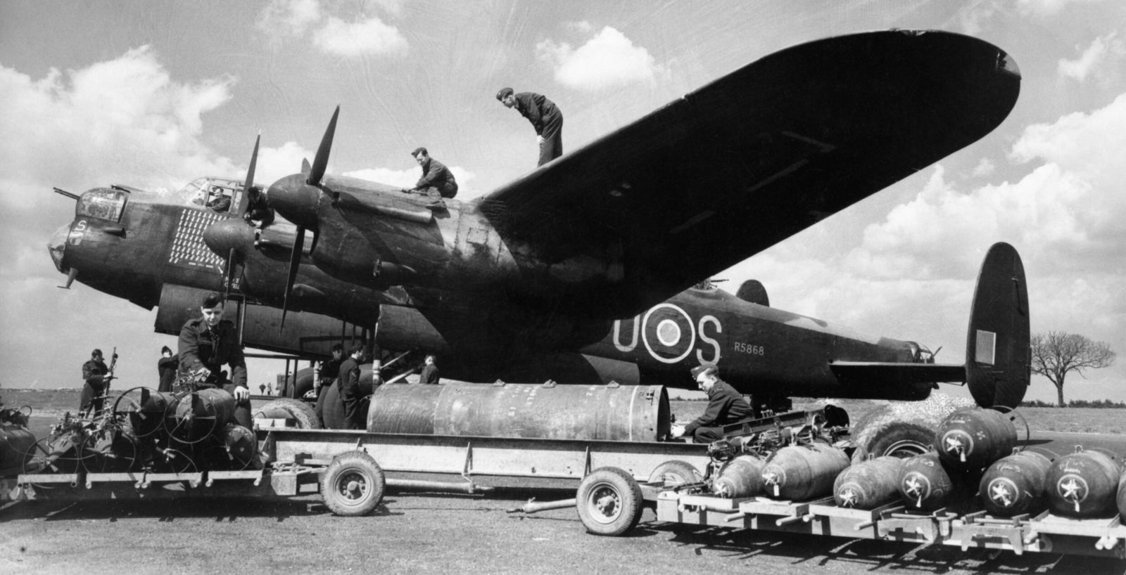 Chargement en bombes de l’Avro Lancaster ‘S for Sugar’, du 467 escadron, à Waddington, Lincolnshire, 1944.