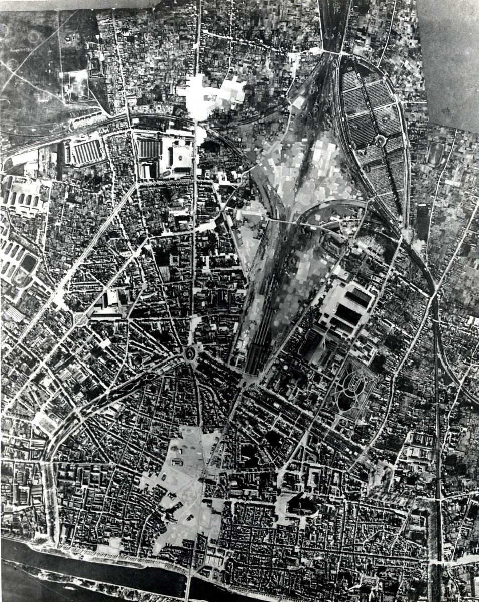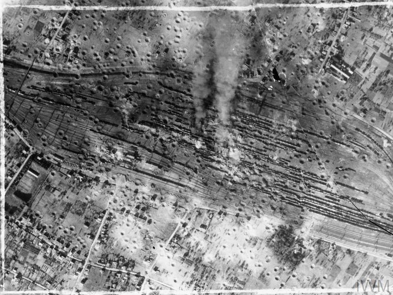 Vue aérienne prise par la RAF à la suite du bombardement sur la gare de triage des Aubrais dans la nuit du 19 au 20 mai 1944 © IWM.