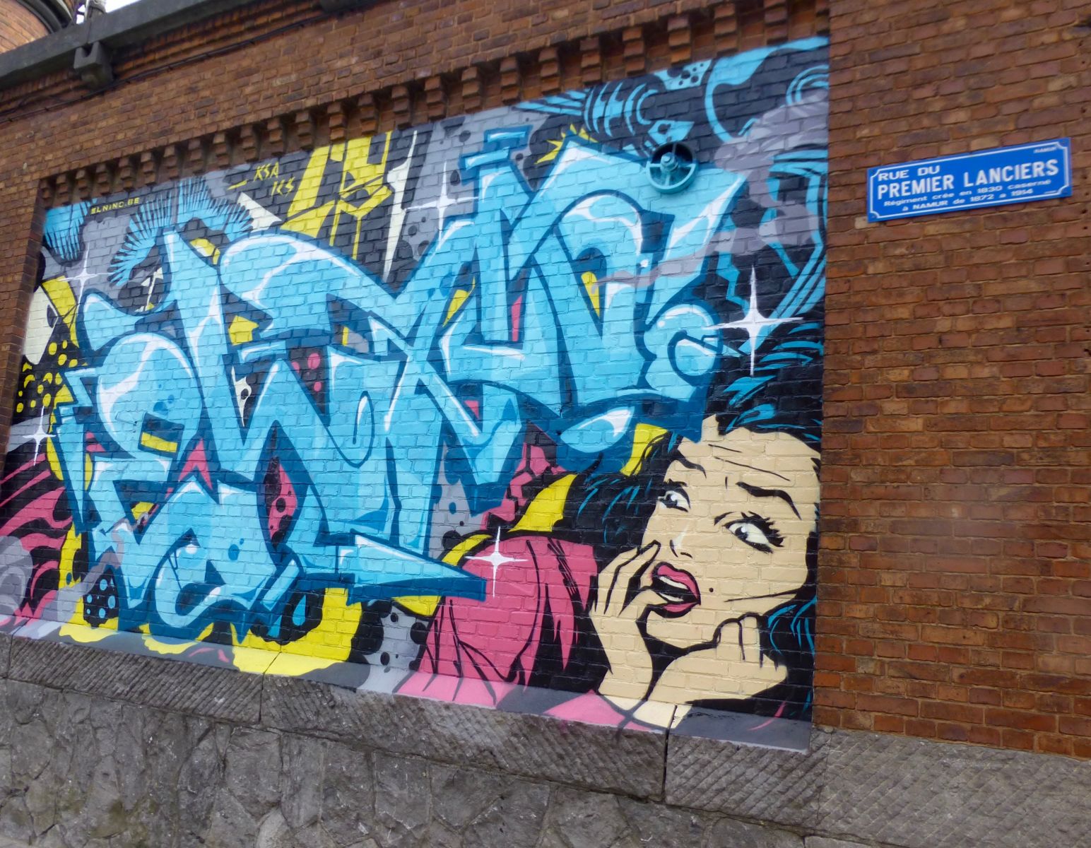 Des statues figurent des emblèmes de la ville qui témoignent de l’humour et du sens de l’autodérision des Namurois. Pour évoquer la lenteur supposée des habitants, deux compères surveillent leurs escargots de peur qu’ils ne se sauvent… Sur un immeuble  voisin se détache l’image d’un célèbre natif des lieux, Benoît Poelvoorde, un acteur-clé à en juger par la composition du portrait. Pas de trace en revanche de Cécile de France, originaire d’un bourg voisin, Andenne.