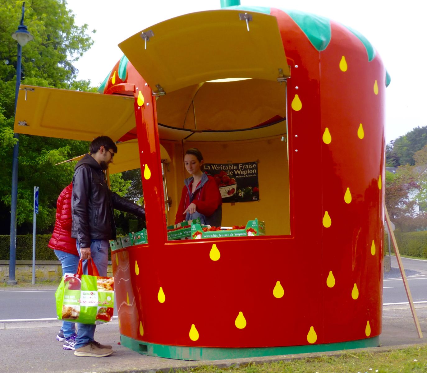 Kiosque de ventes de fraises à Wepion, dans la commune de Namur © YH