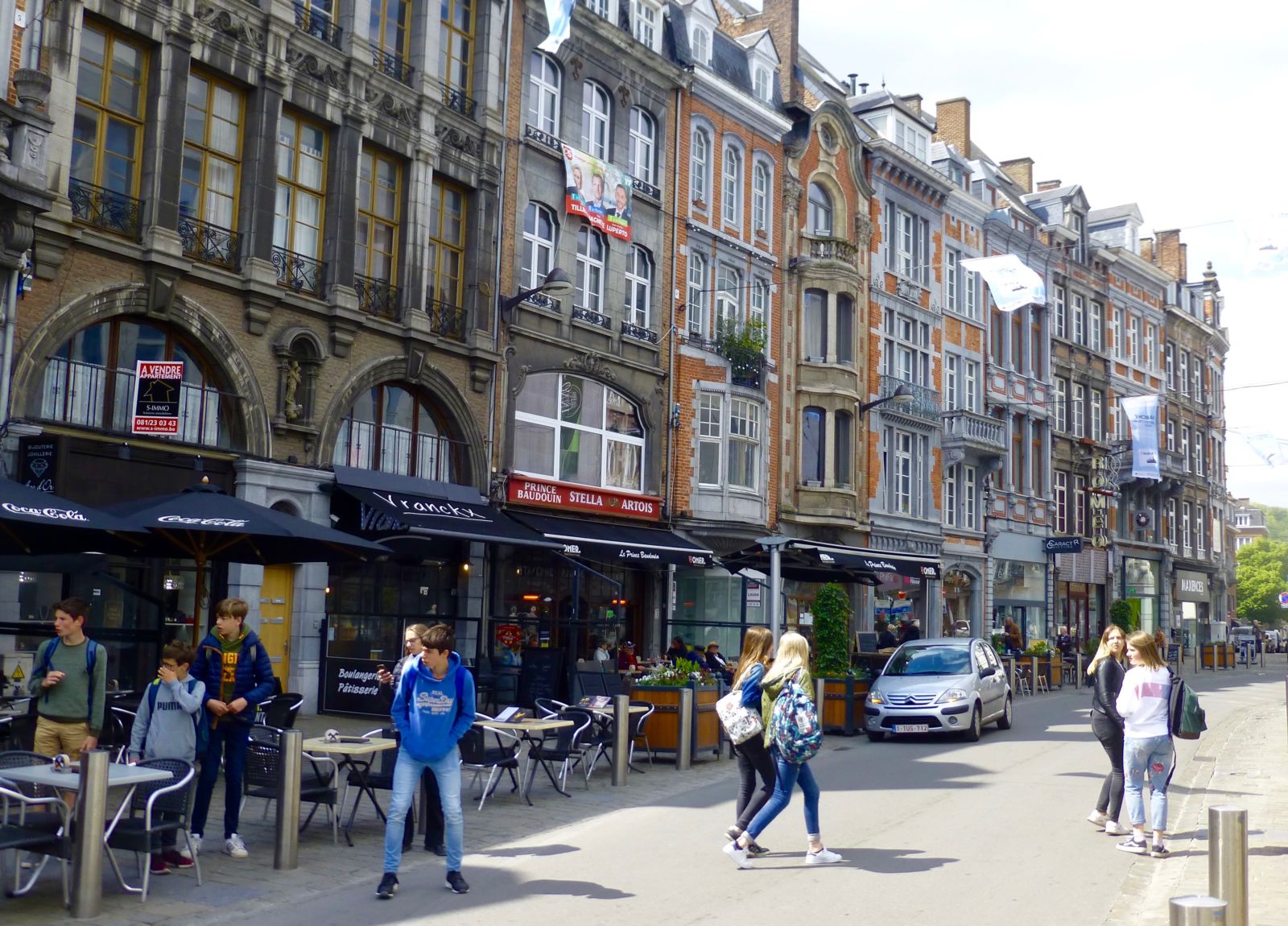 Les murs de la ville sont également des supports d’animation. Ici, la tradition des « échasseurs » qui remonte à plus de 600 ans est évoquée. « C’est un vrai sport, assure Margaux de l’Office de tourisme, les jouteurs montés sur leurs échasses cherchent à faire tomber l’adversaire par tous les moyens ». La remise de l’échasse d’or, le troisième dimanche de septembre, est un temps fort des fêtes de Wallonie. Là, Naffissatou Thiam, athlète belge, championne du monde d’heptathlon, est à l’honneur, tandis que plus loin les adeptes du street art colorent abondamment les murs de brique, d’autant qu’un « Graffiti festival » incite à la création. On ne craint pas non plus de cultiver le paradoxe : l’un des poumons de la ville est connu comme « la place du Vieux », référence à l’ancien marché aux légumes, aujourd’hui rendez-vous incontournable des jeunes.