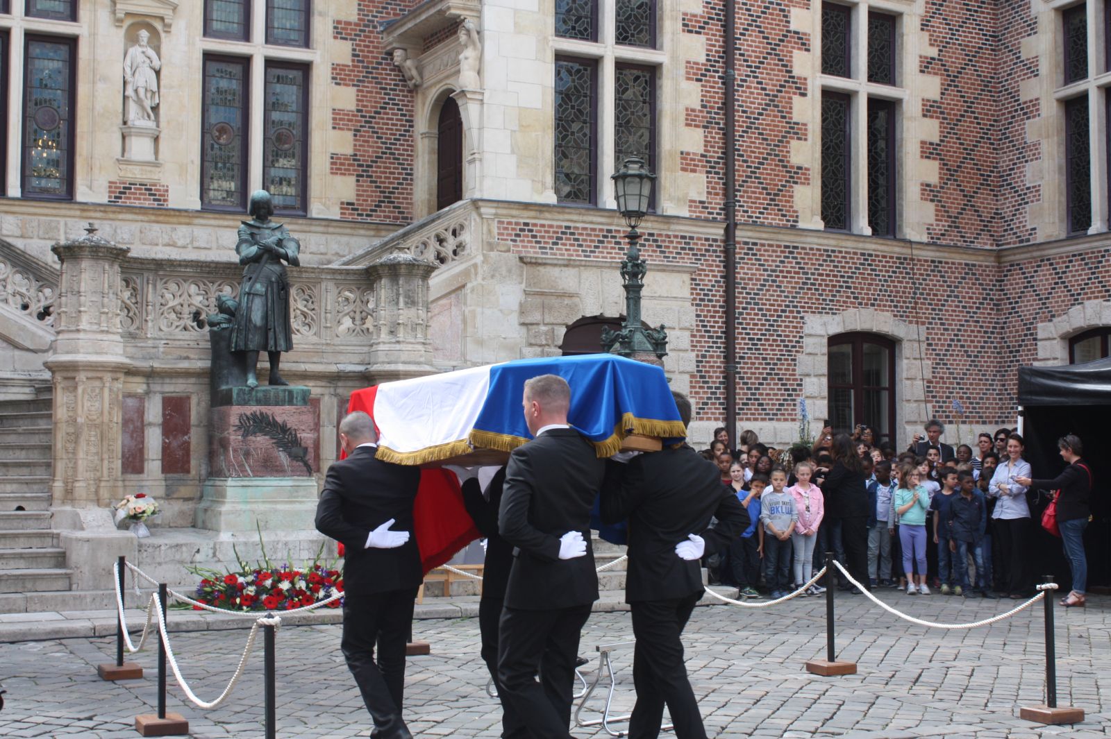 le Chant des partisans, cette fois interprété par par les enfants de l’école Jean Zay. Faisant suite à cet hommage, des centaines d’anonymes seront venus déposer des fleurs au pied du cercueil , ou se recueillir quelques instants.