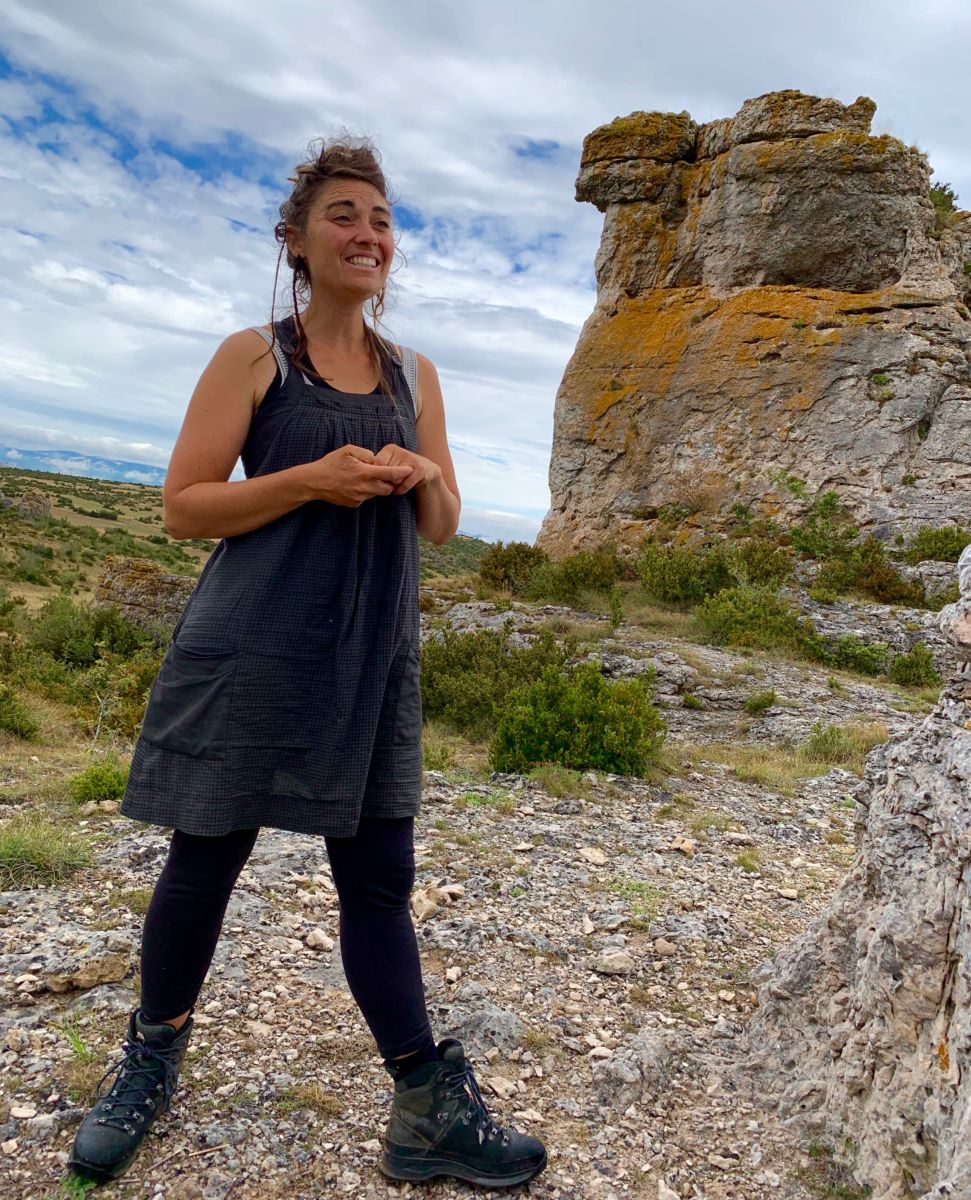 Sur nombre de portes des maisons et bergeries trône une cardabelle, plante porte-bonheur et symbole de la lutte. Nous en repérons lors de notre déambulation. Marie verse un filet d’eau sur l’une d’elles. « Voyez, elle protège son cœur de l’humidité en se refermant. C’est le baromètre des bergers. Elle les prévient d’un possible orage à venir. » Au fil de la balade, cette soi-disant « terre de cailloux » révèle d’autres richesses. Ici, des plumes ondulent joliment sur la lande. « On appelle cheveux d’ange, ces graminées soyeuses ». Là, plusieurs variétés d’orchidées. Au sortir d’un sous bois composé de buissons de buis, nous marquons une pause devant des arbustes à baies, des genévriers. « Le bois sert à la fabrication des manches de couteaux du Larzac, d’où leur surnom, l’âme du Causse ».