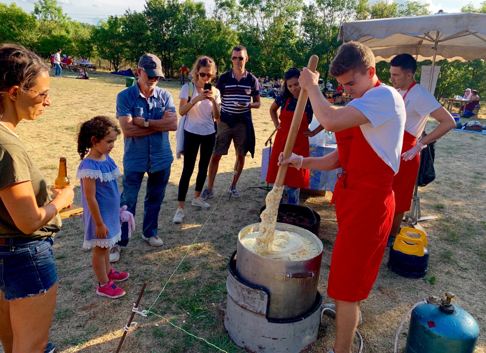 L’étonnant est qu’en cette période estivale, une foule nombreuse se presse à Montredon. Les uns investissent une bergerie à l’enseigne de « La brebis qui lit », d’autres goûtent aux spécialités locales, comme les pascades au roquefort, les farçous du Larzac « beignets à base de blettes cultivées sur place et de viande de porcs élevés en plein air », nous précise le fabriquant. Un stand où se prépare l’aligot attire aussi les visiteurs.