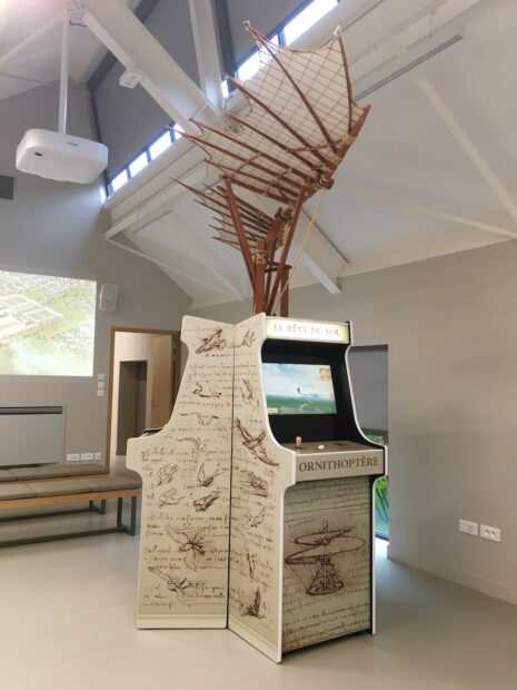 L’immersion dans cette nouvelle exposition démarre par un jeu d’arcade à bord d’une machine volante… ©EB