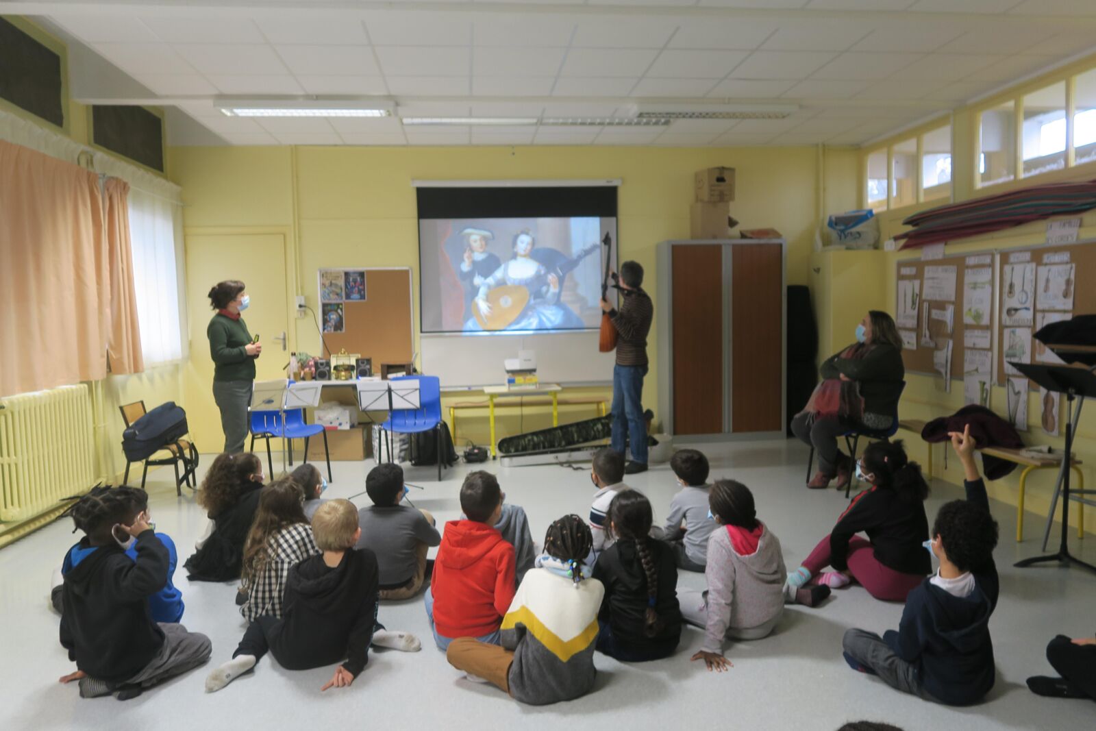 Le projet a démarré bien en amont. Les enseignantes et l’intervenante dumiste en milieu scolaire, Véronique Formont, ont sensibilisé les enfants à la musique ancienne. Elles ont su capter leur intérêt, et à voir les élèves écouter, poser des questions, répondre aux sollicitations, il est évident que la musique fait partie de leurs acquisitions et que le théorbe leur est devenu familier !