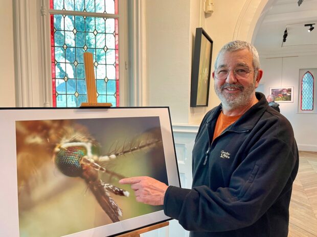 Philippe Barbier est l’un des rares photographes de la région à pratiquer cette technique d’hyper macrophotographie qui permet de montrer l’invisible à l’œil nu. Pour cela, il travaille sur des espèces grosses de 4 millimètres à quelques dixièmes de millimètres, partant d’une fleur, d’un pistil, d’un insecte mort dont se délectent les parasites : « Des bestioles jamais regardées, oubliées… telles les collemboles, ces insectes primitifs utiles à la décomposition des matières. » Mais aussi ce hanneton « naturalisé » qu’il a nettoyé dans un bac à ultrasons, brossé, séché et épinglé comme un entomologiste avant de le photographier dans un décor d’une netteté impressionnante. Ou encore ce moustique dont l’œil a été grossi 17 fois avec 196 images à raison d’une photo tous les trois millièmes.