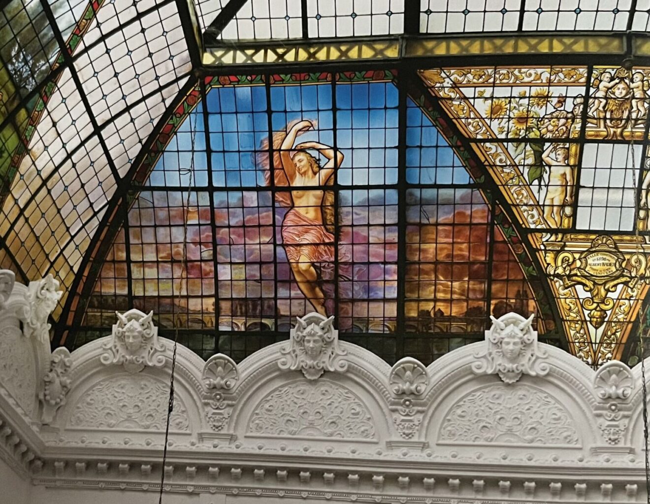Capture photo livre L’Art du vitrail en Touraine. Vitrail L’Aurore Lux Fournier 1896. Brasserie L’univers, Tours