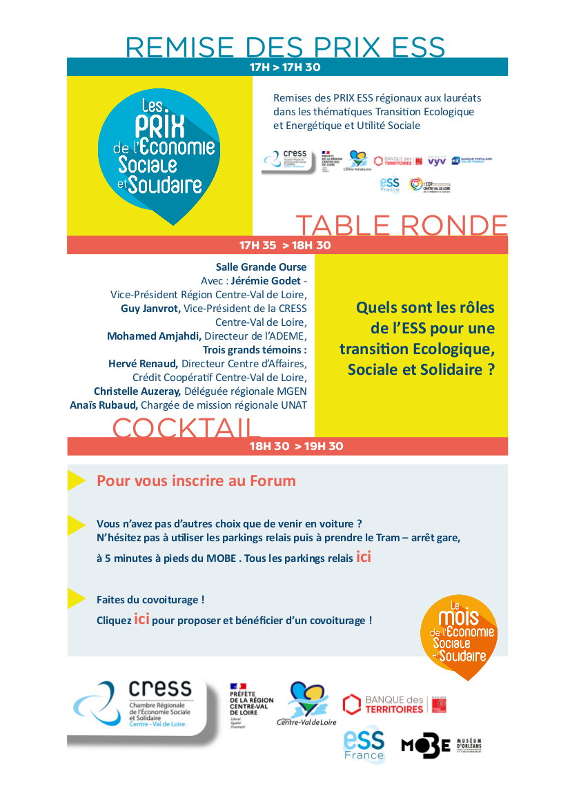 Une table ronde clôturera cet événement qui sera également l’occasion de lancer le mois de l’ESS et de remettre les PRIX ESS 2022.