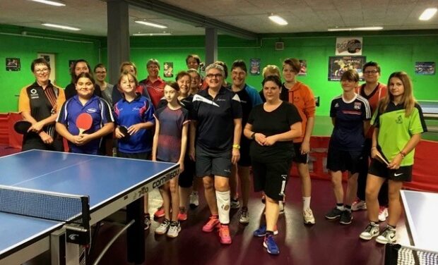 Véronique Pion (en noir et blanc) est toujours aussi passionnée de sport. Photo : Cher Tennis de table.