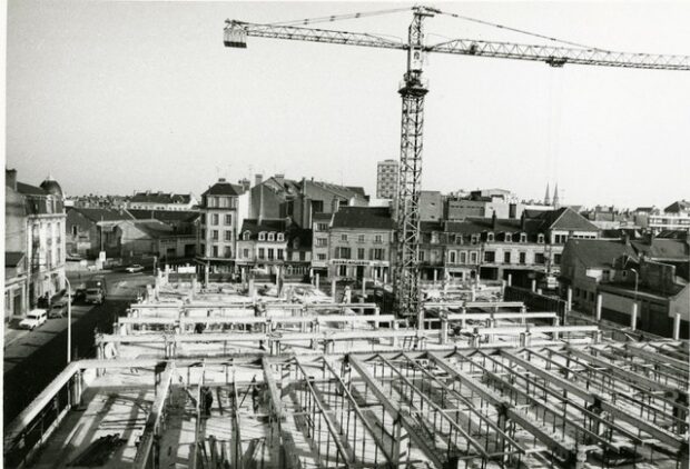 Bref, entre le début des années 60 et 1978 on y a construit un building américain, une mairie high-tech (dont le coût de la rénovation des façades en verre, pour adoucir la facture énergétique a fait reculer la municipalité) et un parking aérien typique de l’architecture brutaliste en plein centre-ville.
