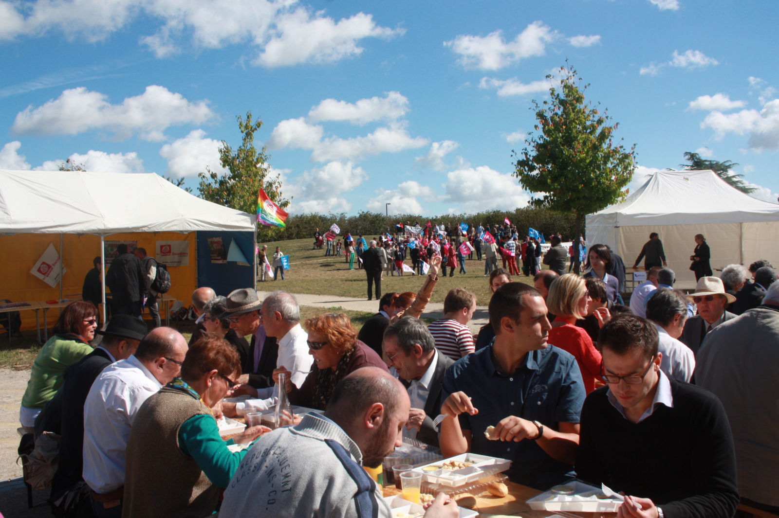 Très en retard, Mme Taubira portera la lourde responsabilité d’avoir fait manquer la messe dominicale à quelques uns des manifestants. Leur responsables avaient de leur côté imaginé un traquenard machiavélique: tandis que les participants socialistes déjeunaient en plein air sur de grandes tables, respectant la consigne d’ignorer pacifiquement la manif, celle-ci dans un brouahaha infernal donna et à entonna la Marseillaise.