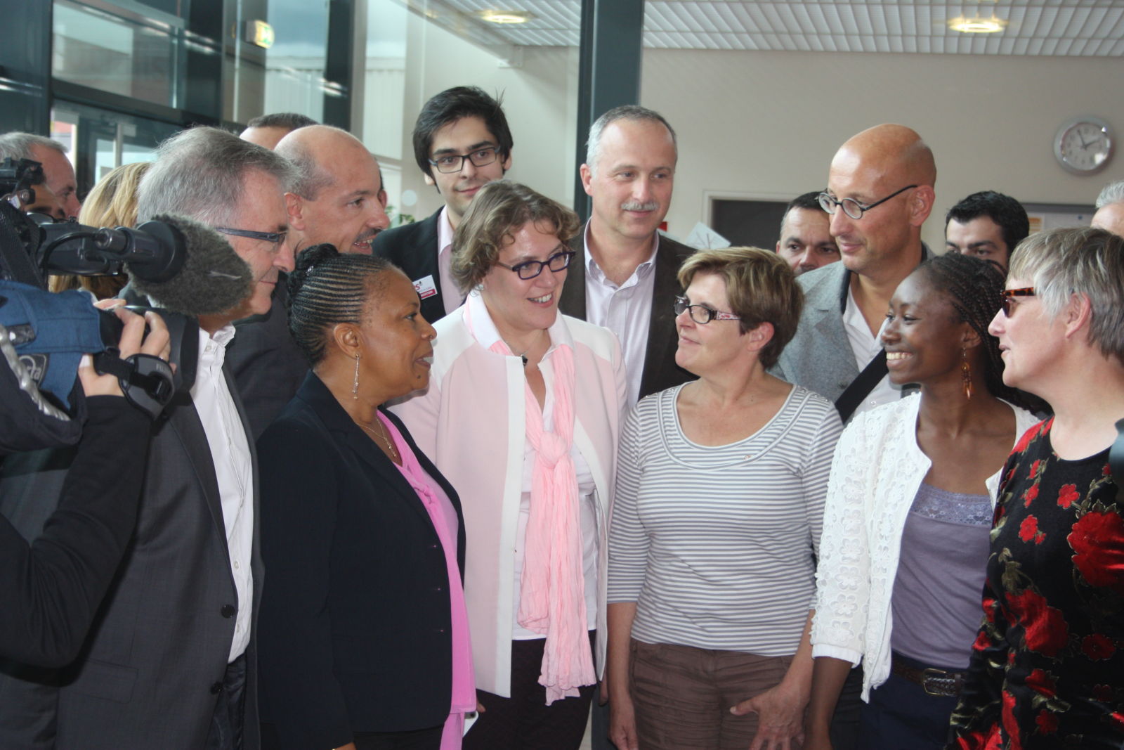 La ministre avec les deux candidates Corinne Leveleux-Teixeira et Carole Canette.