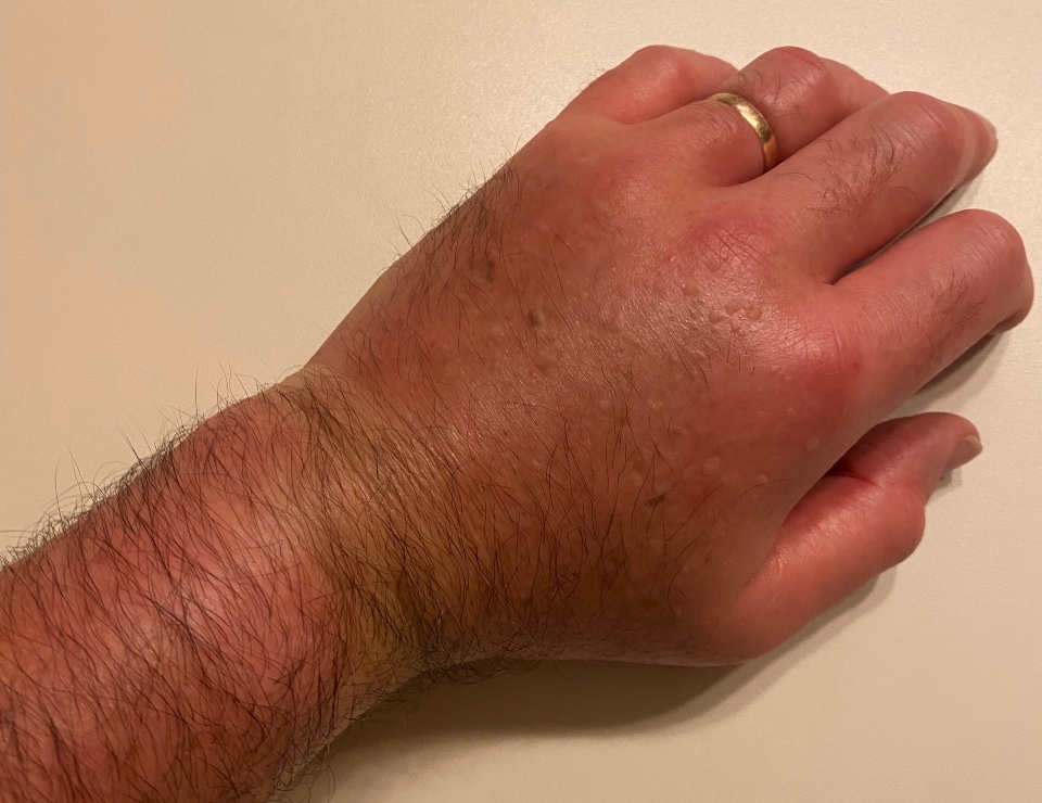 15 minutes après la piqure (main gauche)