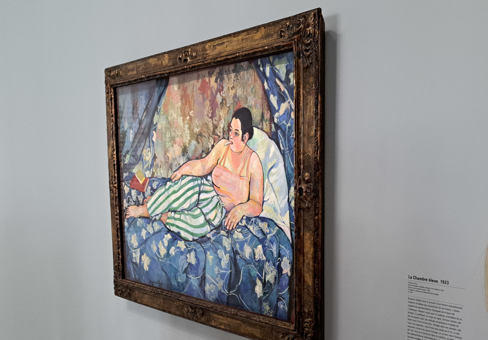 Par ailleurs, de Suzanne Valadon, ses autoportraits, et ses portraits, dont ceux à l’écoute du tourment de son fils, Maurice Utrillo, invitent à vivre des tête-à-tête hauts en couleur et en vie. Place, ici, grâce à nombre d’œuvres, à l’épaisseur affirmée du trait de couleur, à la lascivité brutale et douce de l’intime, à la bourrasque du réalisme et à l’éloge de la vérité. À voir, ainsi, la gouaille de cette femme au cœur de « La chambre bleue », huile sur toile de 1923 qui tient lieu d’affiche pour l’exposition.