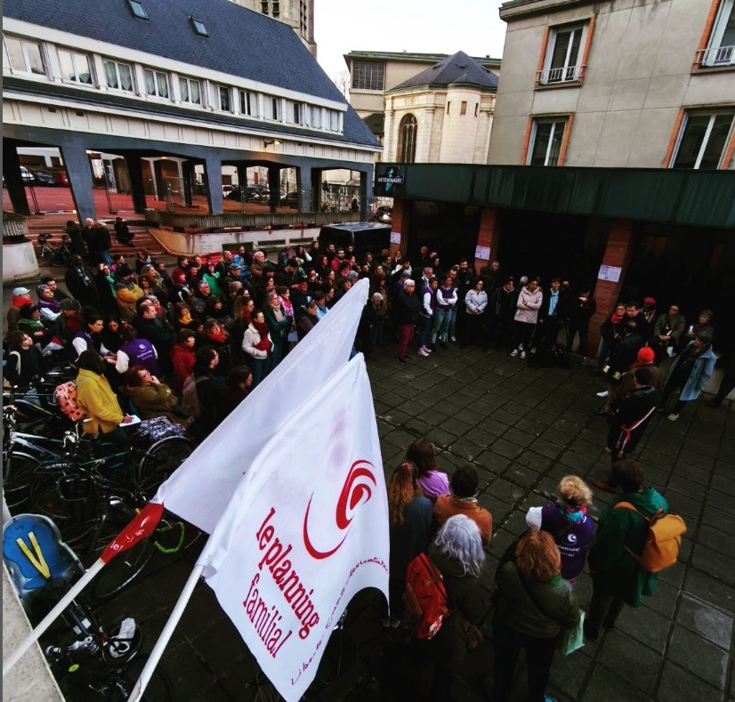 Rassemblement en soutien au Planning Familial 45 devant leurs locaux le lundi 24 mars. Crédit : Le Planning Familial du Loiret.