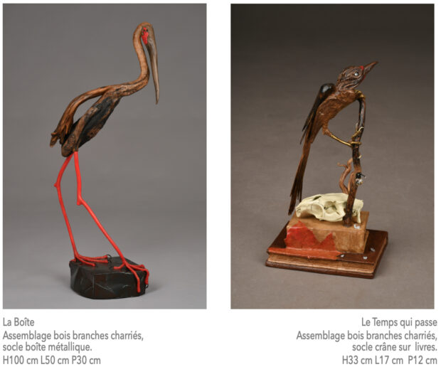 De leur côté, les Boiseaux de Véro Lombard – une contraction de bois et oiseaux – nous interpellent par leur belle élégance. Réalisés à partir de matériaux collectés en bord de Loire, et parfois sur des rives plus lointaines, ils deviennent des ambassadeurs de la biodiversité. « Entre rêve et ornithologie, les Boiseaux s’inscrivent dans une démarche de création durable ». L’art de Véro Lombard entre en résonance avec sa pensée, ses oiseaux expriment son engagement à la protection de l’Environnement et de la Biodiversité.