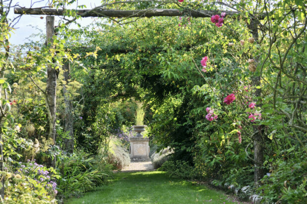 Ecrin en bord de Loire, les jardins de Roquelin sont un hommage aux roses anciennes qui s’épanouissent sur de superbes pergolas. Photo EB
