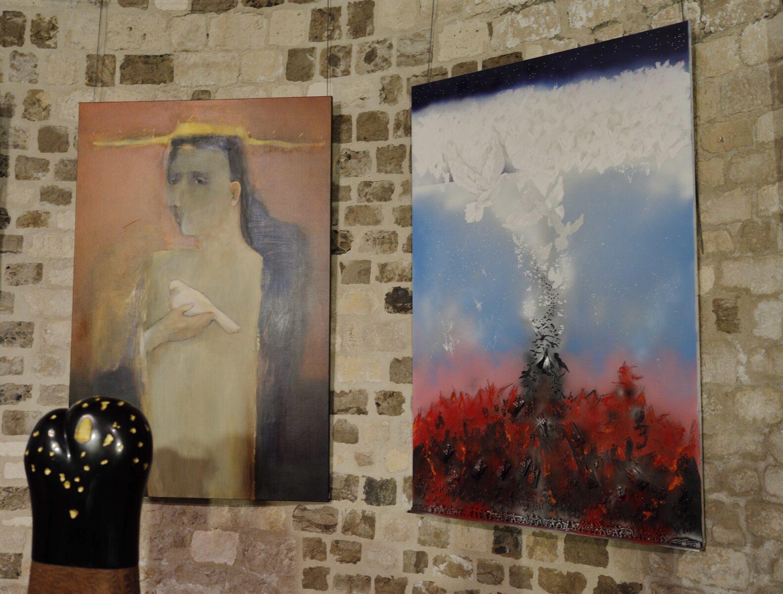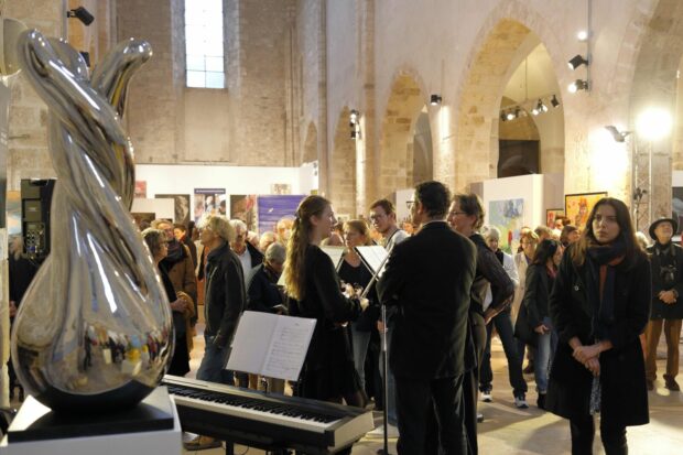 Ainsi, l’art n’est-il pas insensible aux souffrances du monde, et le public toujours nombreux au vernissage ce vendredi en l’église Saint-Pierre-le-Puellier d’Orléans, a pu découvrir dans le chœur de ce lieu, ce chant pour la paix constitué de quinze œuvres d’artistes pour évoquer cette aspiration de l’humanité à la paix, quinze œuvres grand format originales qui dans leur diversité de styles constituent un manifeste pour la paix, l’art étant ici convoqué comme langage de la fraternité humaine.