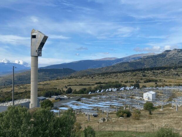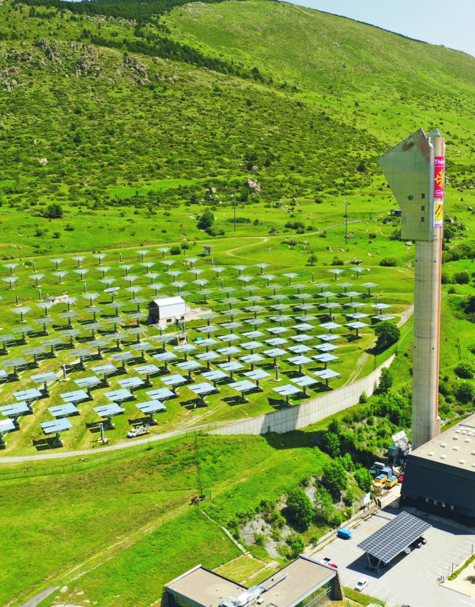 Visible dans toute la vallée, dominant Font-Romeu, elle se caractérise par une tour de 104 m qui concentre les rayonnements réfléchis par des capteurs au sol répartis autour d’elle. Le projet de construction remonte aux années 70. La France sort affaiblie des deux chocs pétroliers. L’État charge EDF de développer l’énergie solaire. En collaboration avec le CNRS, le programme est nommé THEM (Thermo-Hélio-Électrique-Mégawatt). La centrale est raccordée au réseau en 1983. C’est un saut technologique et un succès pour la France qui lui confère une avance internationale dans la conversion de l’énergie solaire en électricité.