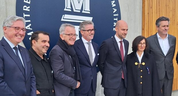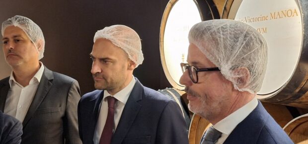 Le ministre Jean-Noël Barrot (au centre) au côté de Paul-Olivier Claudepierre, dirigeant de la Maison Martin Pouret – photo Magcentre