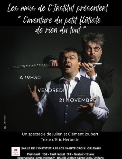 Ce vendredi 21 novembre, place aux talentueux frères Joubert, Julien et Clément, qui, sur un texte d’Éric Herbette interprètent « L’aventure du petit flûtiste de rien du tout ».