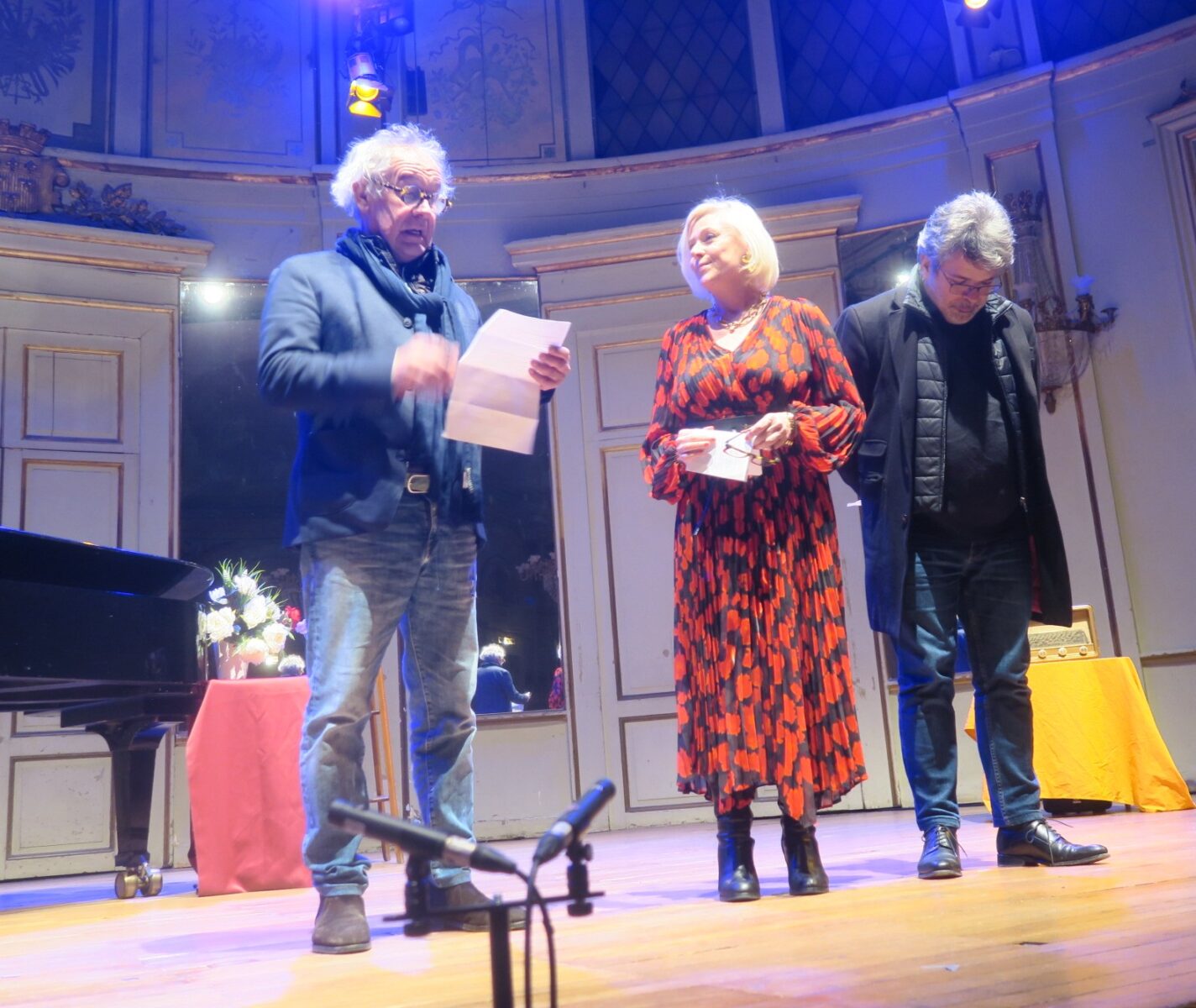 Les Amis de l’Institut avec de G à D, Gérard Audax, président, Corinne Turba-Le Strat, vice présidente, Jean-Philippe Bardon, directeur musical. Photo ACC