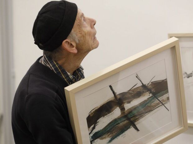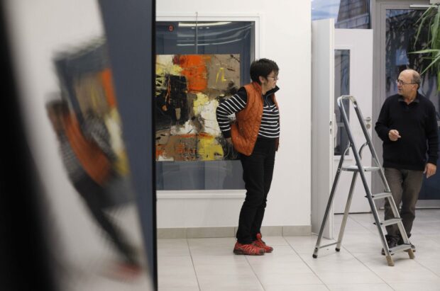 Denis Pugnère lors de l’installation de l’exposition – par Valérie Thévenot