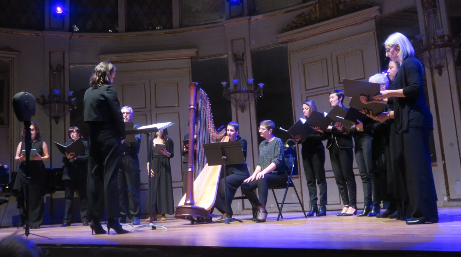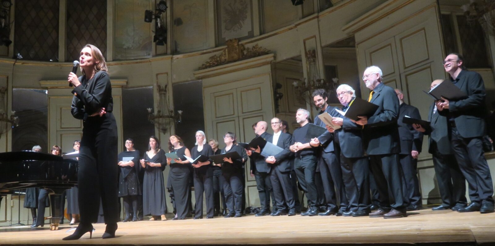 L’ensemble vocal Éphémères dirigé par Émilie Legroux, en formation mixte lors du concert anniversaire du 29 novembre 2025, salle de l’Institut. Photo AC Chapuis