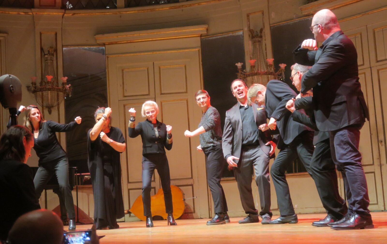 Nombreux furent les temps forts de la soirée, comme La Barcarolle des contes d’Hoffmann, Ständchen de Schubert (soliste Ilme Gruner), ou Rafiki est en deuil de Tsidii Le Loka, emporté du fond de la salle par Florie Dufour, soliste et ses comparses les hyènes.