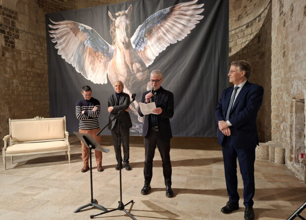 Prenant à son tour la parole, Capton, ému et toujours aussi humble, a tenu à saluer le scénographe Gil Bastide, « l’artiste des artistes », les artisans de cette exposition mais aussi les fidèles et ses proches qui l’ont accompagné dès l’origine de son parcours. Les derniers mots de son propos ont été adressés, en guise de remerciement, à l’impressionnante assistance rassemblée dans la collégiale : « Sans vous, amateurs d’art et collectionneurs, une carrière aussi longue ne serait pas possible. »