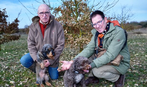 Pour dénicher leurs truffes, les frères utilisent des chiens truffiers, en l’espèce un Lagotto Romagnolo et un Teckel à poil dur qu’ils ont éduqués spécialement. Pas de cochon aux Banchets, « plus difficile à contrôler, l’utilisation de cet animal est aujourd’hui abandonnée par la quasi-totalité des trufficulteurs. Et l’activité de cavage (ramassage des truffes) doit rester discrète car les voleurs sont de plus en plus à l’affût », explique Bertrand.