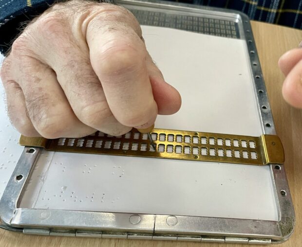 Quand il perd la vue à 13 ans suite à une allergie médicamenteuse (syndrome de Lyell), Michel Brard, président de la Fédération Déficiences Visuelles & Autonomie et secrétaire général de la Fédération des Aveugles de France, apprend le braille. « En 1971, les ordinateurs n’existent pas, j’apprends sur une tablette en métal avec une réglette de deux lignes et j’écris avec un poinçon : un symbole égal une lettre. Une écriture à 6 points qui permet de faire 64 combinaisons que l’on lit avec la pulpe de l’index, partie la plus sensible dans la relation cerveau-main. » Depuis, le braille a évolué : machine à écrire, documents inclusifs avec des livres et des dessins en relief, et depuis les années 2000, des outils connectés reliés à l’ordinateur, assistant vocal… « Le braille n’est pas imposé, c’est un choix », poursuit Michel Brard. « Et tous ceux qui en ont eu besoin et l’ont utilisé ont été très aidés dans leur parcours de vie et leurs études. »