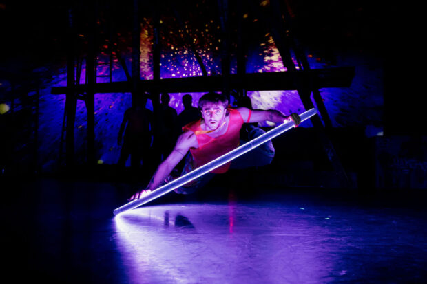 Chaque spécialité, au fond, est déjà connue. On a déjà tous vu un numéro de sangle aérienne ou de cerceau. Mais la grande réussite du Cirque Éloize, c’est de les replacer dans le décor, dans cette idée constante de raconter la grande ville moderne.