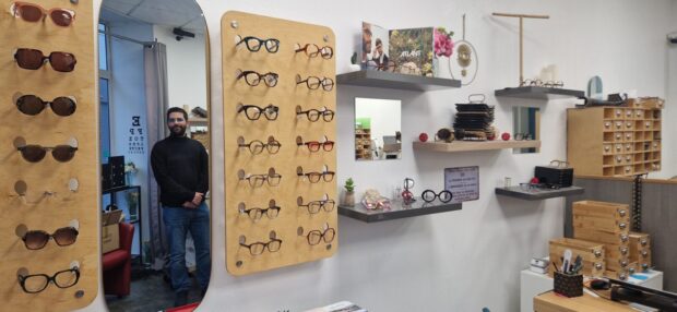 À Montargis, Geoffroy Balzeau exerce un métier devenu rare : opticien et lunetier, il vend des lunettes dont les montures, pour certaines, sont aussi conçues dans sa boutique – photo Izabel Tognarelli