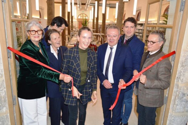 Axelle Renié (au centre) avec sa maman (3e à D), son époux Mathieu (2e à D) et les personnalités lors de l’inauguration de l’atelier situé dans le bâtiment K du quartier Rochambeau le 17 décembre dernier. Crédit JL Vezon.