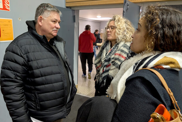 Pour Didier Doye, 59 ans, ici avec les représentantes d’une des entreprises, sa reconversion est compliquée. Photo Magcentre.