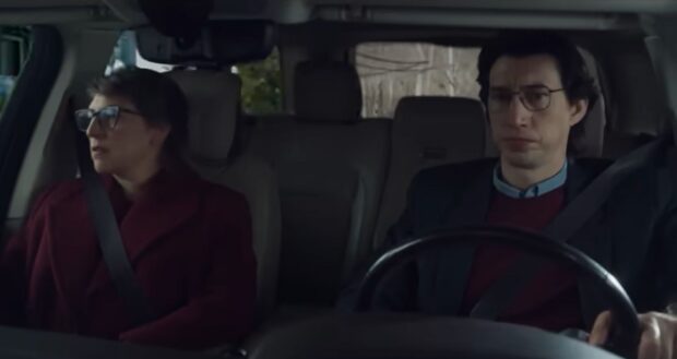 Adam Driver et Mayim Bialik en route vers chez Father. Capture bande annonce