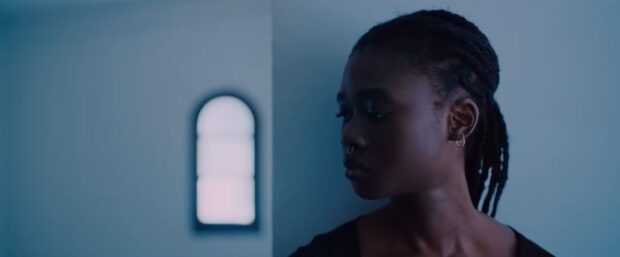 Jolie (Laetitia Ky) inquiète pour ses amies. Capture bande annonce.