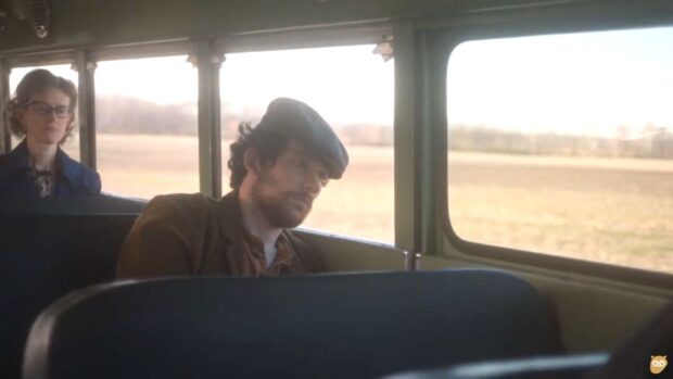 On est en 70 à Farmingham, une petite ville du Massachusetts. La reconstitution, avec un travail poussé sur les couleurs et la recherche de décors, nous ramène vraiment à cette époque. Des marrons passés, des extérieurs au soleil pâle, et le musée en briques rouges – en fait la bibliothèque Cleo Rogers de Columbus dans l’Indiana, conçue par l’architecte I. M. Pei en 69. On est en automne et les grands arbres des rues sont couverts de feuilles qui vont bientôt tomber. Tout est à l’échelle des immenses voitures, caisses parallélépipédiques au bruit bien reconnaissable. Les intérieurs aussi sont parfaitement reconstitués, autant le musée dans lequel on découvre la famille de Mooney, puis chez lui. Reichardt a confié la musique à Rob Mazurek, un jazzman compositeur de Chicago. Sa trompette à la Miles Davis sonne formidablement juste, et les percus, balais sur les cymbales qui accompagnent les moments tendus, nous ramènent complètement en 70.