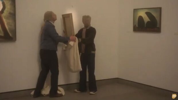Il part nuitamment cacher les toiles dérobées dans une porcherie. Séquence longue et hilarante. Lorsque l’échelle tombe, on est dans la parodie, le très gros, et pourtant tout fonctionne, parce que ce type est tellement mystérieux, tellement loser jusqu’au bout, mais tellement méticuleux et attentionné ! On attend le prochain raté. En fait, le personnage reste insaisissable. On ne sait rien. Est-ce pour l’argent ou pour les tableaux qu’il a fait ça ? Et qu’est-ce qu’il fait dans la vie, qu’est-ce qu’il est ? Fils de juge, il semble très cultivé après des études d’art. Soit disant charpentier spécialisé, mais il ne travaille pas.