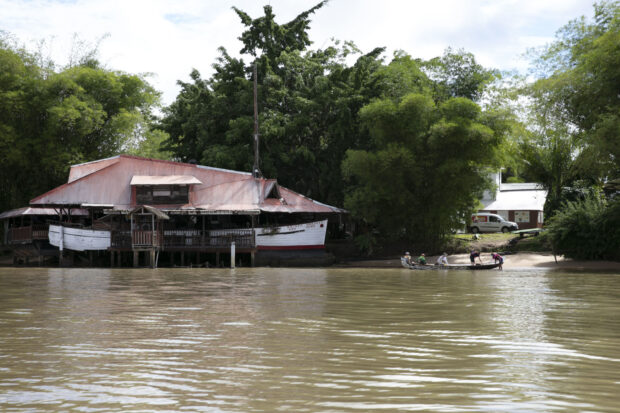 La visite des villages le long du fleuve Maroni (520 kilomètres) se fait en pirogue jusqu’à Maripasoula, la limite territoriale entre les populations de Noirs marrons et les territoires amérindiens. C’est une excellente occasion de dormir en hamac sous les carbets, l’habitat traditionnel amérindien ou de pénétrer dans la forêt primaire. Bien : prévoir au minimum quatre à cinq jours pour cette partie du voyage. De Maripasoula, on peut également se rendre en taxi-pirogue, à Papaïchton, capitale historique du pays des Bonis (également appelés Alukus), fondée en 1969. En 1971, son Gran Man Tolinga a été reçu à l’Élysée, ce qui lui a valu le nom de Papaïchton-Pompidouville. C’est un bourg tranquille avec ses manguiers, ses cases de bois, son embarcadère où tanguent les pirogues. Il y a là aussi, ainsi que dans les villages de Loka et Boniville tout proches, des maisons traditionnelles bushinengées à pignon triangulaire ornées de Tembés. Construites en bois par le mari pour sa femme, les cases sont de modestes dimensions, autour de 20 m2 ; elles sont couvertes d’un toit en feuilles de waï. Posées sur le sol ou sur pilotis, elles sont entièrement closes, contrairement au carbet amérindien ouvert, et protègent des esprits de la nuit. En plus de cet espace dédié au sommeil où sont suspendus les hamacs, un carbet-cuisine est souvent commun.