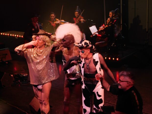 Pendant une heure trente, trois extraordinaires créatures, Corrine, Patachtouille et Brenda Mour, ont enchainé avec tendresse et beaucoup d’humour et d’autodérision, les chansons d’Alain Bashung, accompagnées par des remarquables musiciens : Delphine Dussaux, alias Cosme McMoon, au piano, le très électrique Christophe Rodomisto à la guitare et le fabuleux quatuor à cordes du Rainbo Symphony Orchestra.